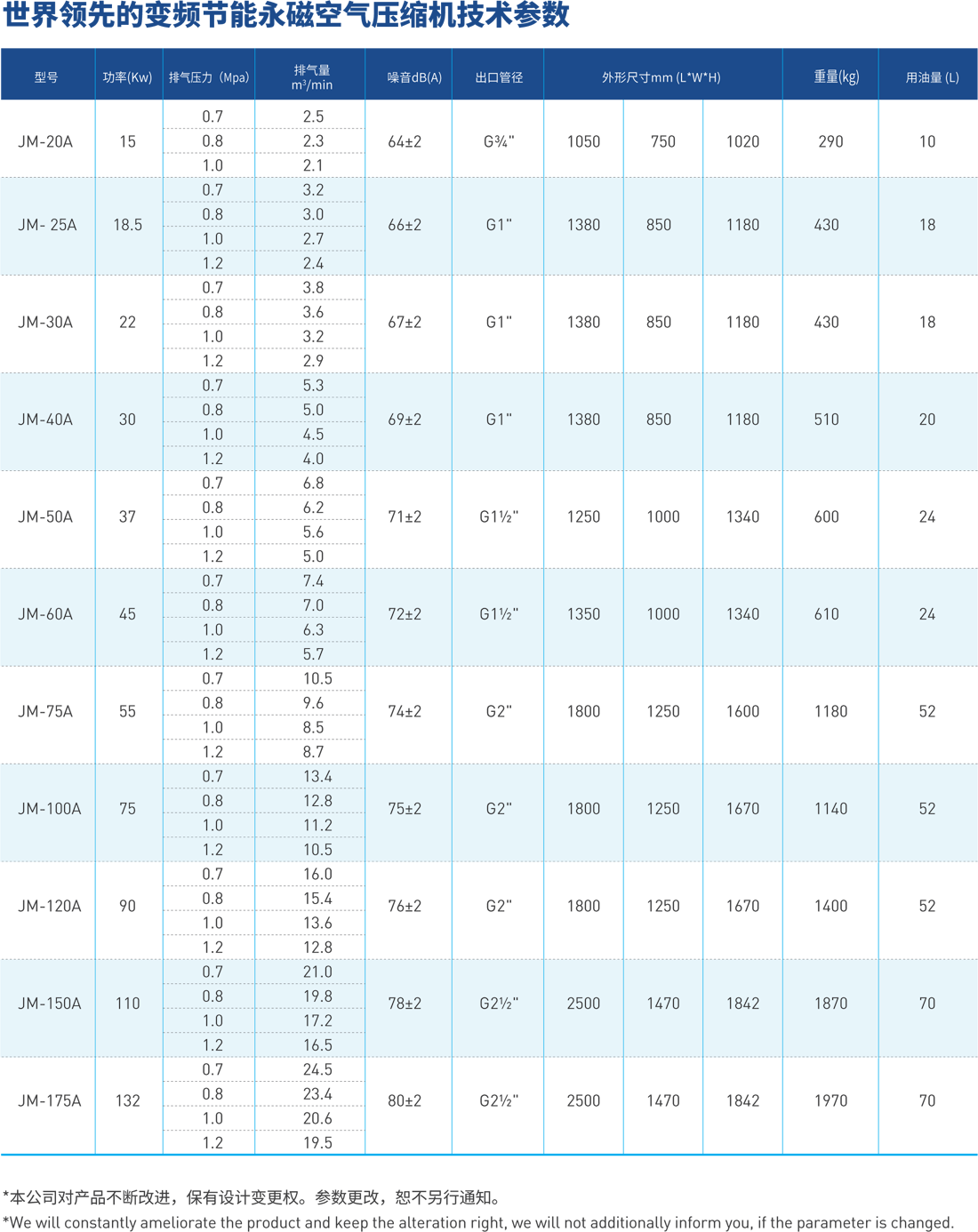 巨风永磁机型 巨风变频空气压缩机、全球同步,让更多的中国用户感受省电带来的喜悦: 1、先进的全变频结构、变频系统; 2、只需单点电气连接; 3、无能量损失; 4、和变频电机相连、高效率、长寿命; 5、工变频两用机型; 产品参数 返回顶部 JINNIANHUI.COM(中国)有限公司 | jiuzhou九州官方在线入口 | 星空游戏官网 | 杏彩体育 | 九游·体育 | 易游 (中国版权)官方网站 | AK平台_AK(中国)一站式服务平台 | KY.COM | 6686在线(中国)唯一官方网站 |